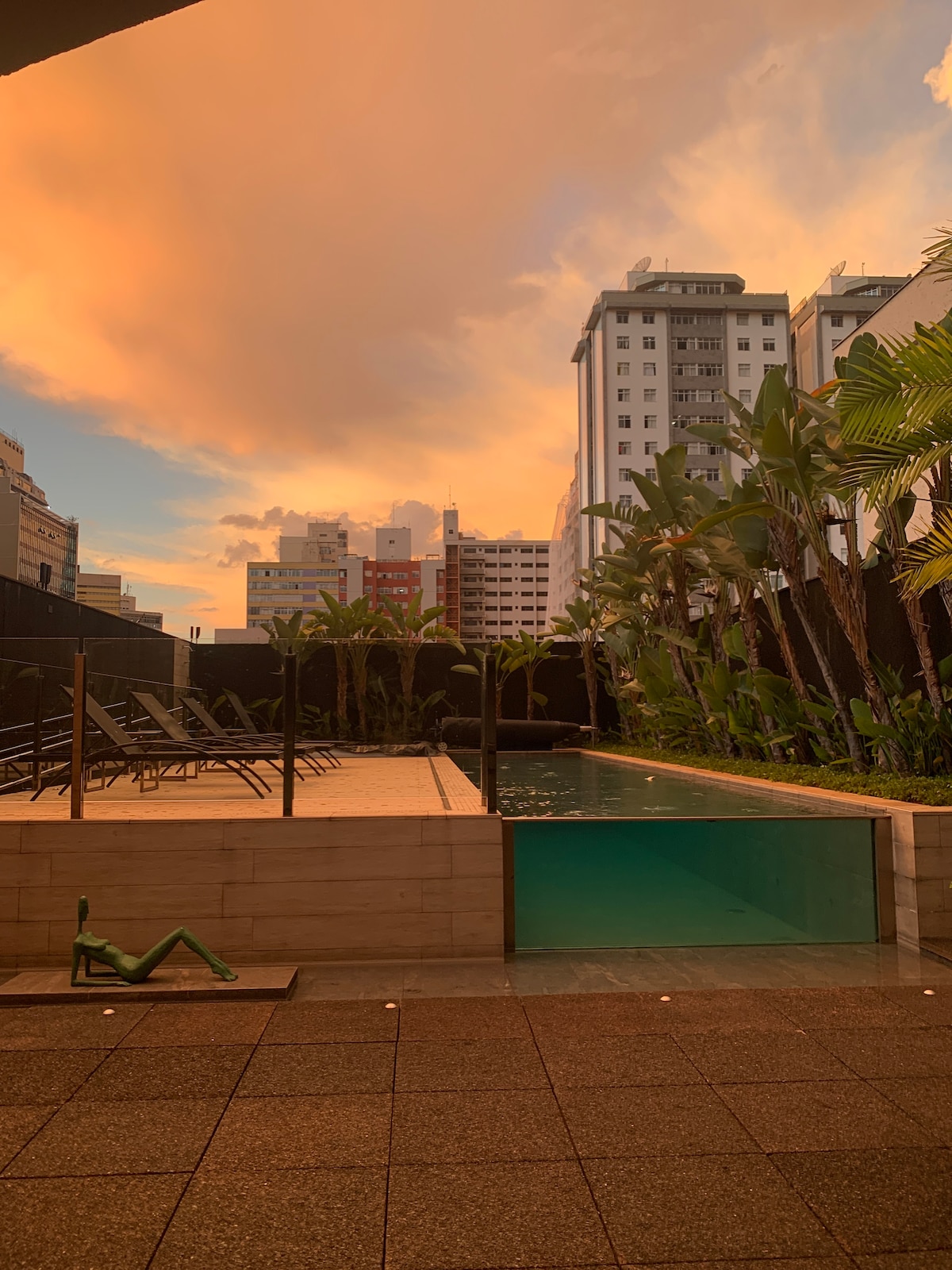 Habitació al barri de Funcionários/Savassi, Belo Horizonte. Piscina, graella, sauna seca, gimnàs i zona de festes. Banyera d'hidromassatge al costat de la piscina.