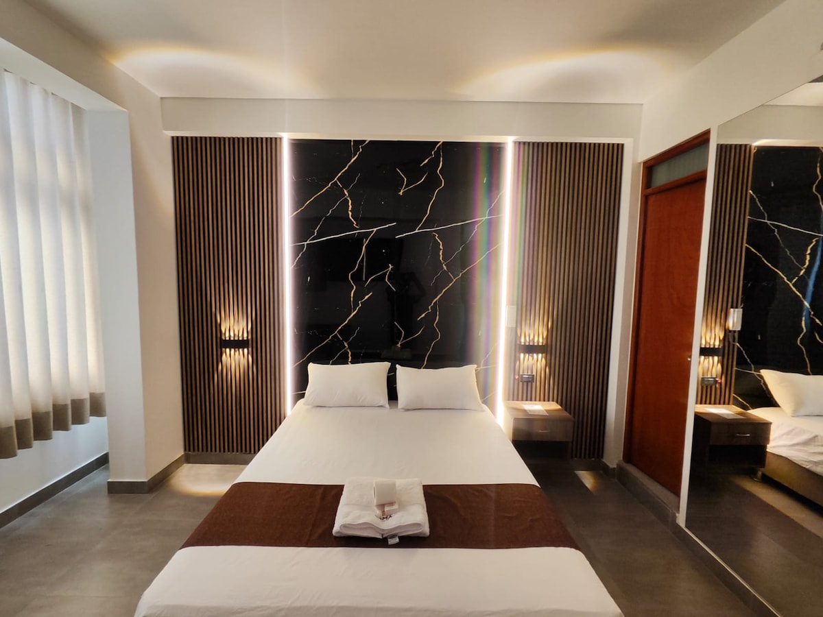 Este lugar lleno de estilo está cerca de todo lo imprescindible. Suite de estreno , agua fría / caliente,Wifi,baño privado , recepción las 24 horas del día con personal calificado para que su estancia sea la más placentera , contamos con servicio de platillos a la carta a través de nuestros aliados estratégicos con una variedad de opciones de nuestra gastronomía.