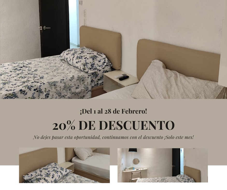 Habitació 2 llits individuals a Zona Centre Mty
