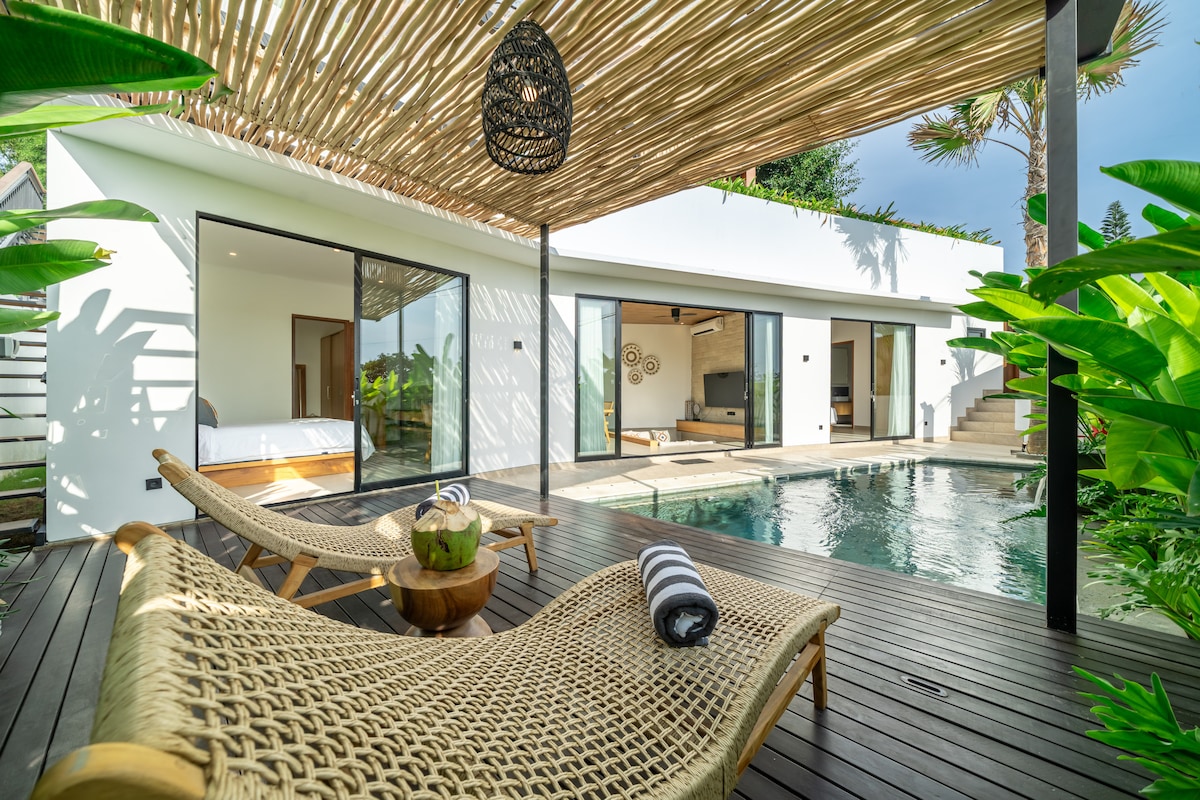 Escapada tropical amb estil amb piscina a Bingin