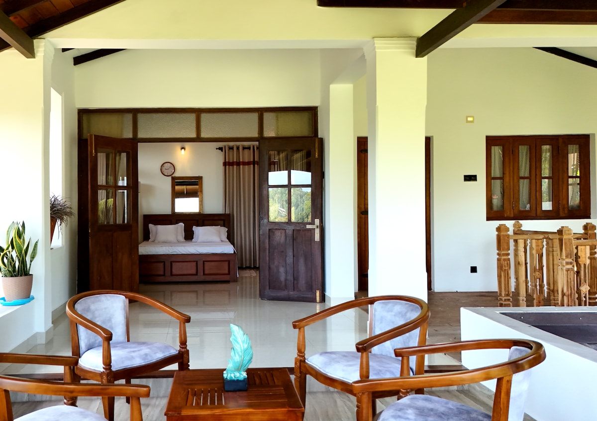 Et donem la benvinguda a Rev'e, la casa de vacances perfecta, és ideal per a una família, un grup d'amics i, fins i tot, per a una parella que necessita espai. La vil·la està totalment equipada amb 3 dormitoris i dos lavabos adjunts. Una cuina/rebost ben equipada. Un soterrani d'entreteniment inclou un reproductor de DVD per veure pel·lícules . El loft està equipat amb una taula de billar, televisió per cable i un rebost equipat amb nevera. Un altre lloc per relaxar-se. ( un balcó si has de fumar) Els turons de cultiu de te de Sri Lanka ofereixen paisatges impressionants, els turons empinats envoltats amb un te verd lluminós i cascades es van convertir en un refugi d'estiu pels britànics. Pots gaudir d'una ronda completa de golf de 18 forats a 1890 peus sobre el nivell del mar, que compta amb camps de golf,búnquers i un entorn pintoresc... El parc nacional dels avions Horton és una zona protegida a les terres altes centrals de Sri Lanka i està coberta per les gespes de Montana i el bosc de núvols. Aquest altiplà a una altitud de dos-cents metres és ric en biodiversitat i moltes espècies que es troben aquí són endèmiques de la regió. Jardí botànic - Hakgala , a vint minuts en cotxe del bungalou, Situat a una alçada d'uns mil sete-cents quaranta cinc metres sobre el nivell del mar. La flora dels jardins és distintivament subtropical i està formada per la flora autòctona de muntanya entrellaçada amb les que es presenta d'altres països subtropicals. Els jardins consta d'un estany central i un jardí de bombetes, un jardí de roses, una casa de vidre, un jardí de roques i un Arboretum.