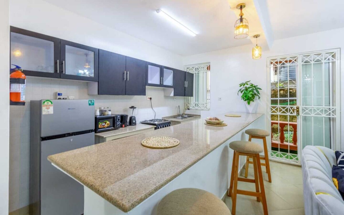 Escapa't a un refugi elegant d'un dormitori a la vibrant Mtwapa! Tant si busques una escapada romàntica, una escapada en solitari, un cap de setmana o una estada tranquil·la per treballar, el nostre espai, de disseny, ofereix la combinació perfecta de comoditat i conveniència. Situat just al costat de Malindi Road, el nostre espai està a prop de platges vibrants, vida nocturna animada, restaurants i centres comercials: el lloc perfecte per relaxar-se i viure aventures!