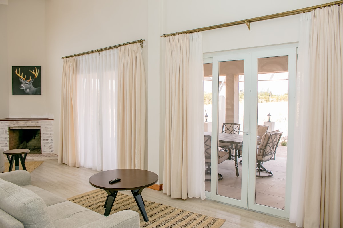 És un lloc meravellós per allotjar-te si vols relaxar-te en un lloc amb molt d'espai, menjar i gaudir de la teva privacitat. Les cuines tenen tot el que necessites per fer un àpat, o hi ha taules de pícnic i graelles a l'allotjament si vols menjar a l'aire lliure. Les vil·les, mentre que estan al camp, disposen de tots els serveis moderns amb televisió per cable, wifi i una cuina molt ben equipada. Hi ha 3 dormitoris grans, tots amb bany privat. La sala d'estar i la cuina són de planta oberta i s'obre a l'exterior.