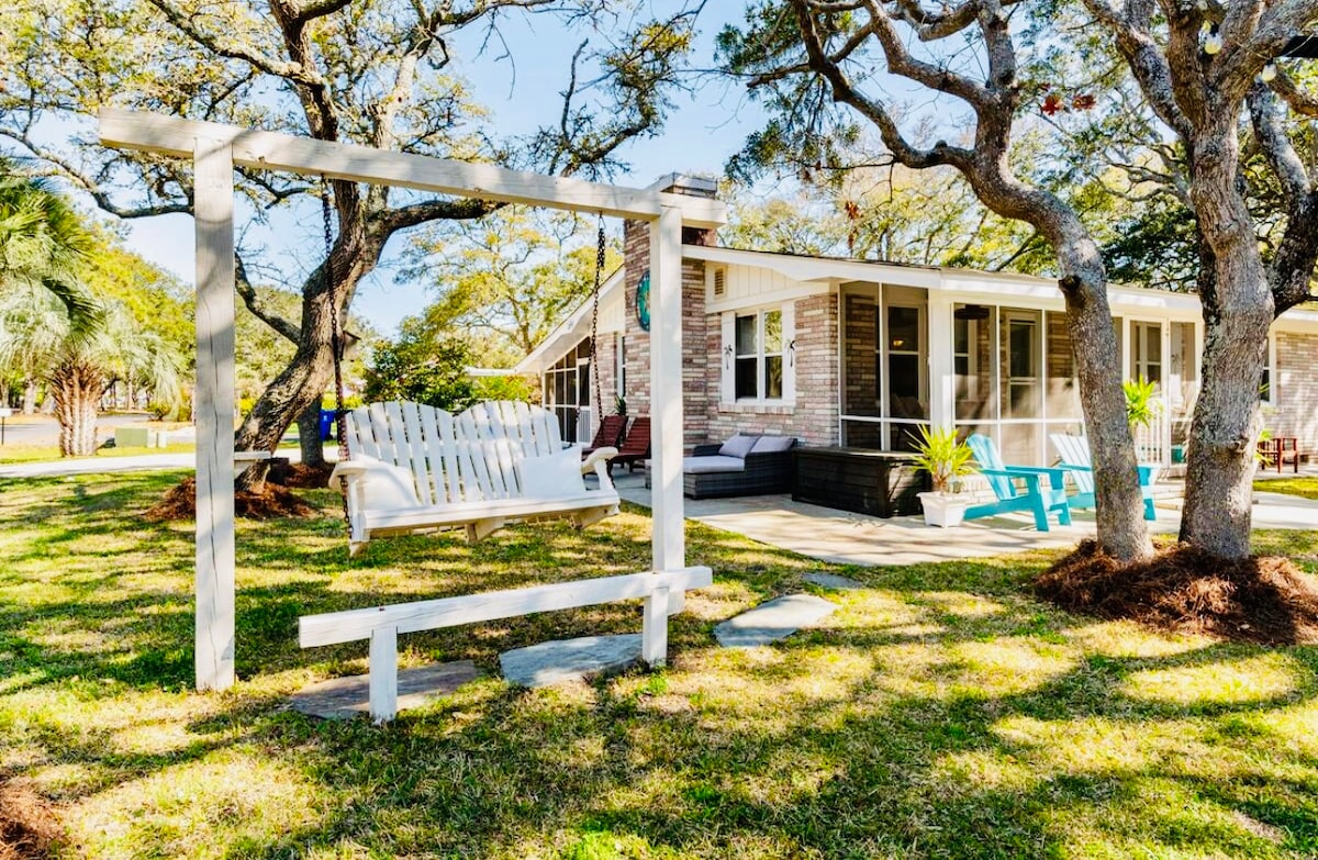 Et 🐶 donem la benvinguda a la nostra caseta de platja entre els arbres🌳. Un refugi tranquil i apte per a gossos per a tothom de la teva família. Aquesta acollidora i pintoresca "casa lluny de casa" està a prop de la platja (0,2 milles), botigues locals, restaurants i camps de golf, però en un barri tranquil lluny de les multituds. Un porxo amb mosquitera entre els arbres per relaxar-se i un ampli pati posterior en un terreny boscat per a tots. 📝LLEGEIX l'anunci sencer i TOTES les normes abans de fer la reserva. Els 🐶gossos sempre són benvinguts.