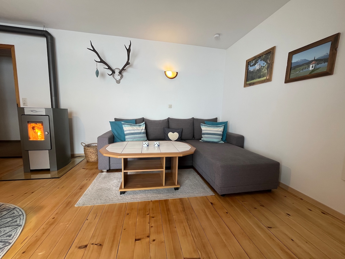 El nostre pis està situat en plena natura preciosa amb vistes al castell de Neuschwanstein. El tranquil poble es troba a uns 6 km del centre del poble. El magnífic Forggensee està a uns 10 minuts a peu. Moltes rutes de senderisme també són de fàcil accés. Ubicació ideal per a nombrosos esports i relaxar-se. T'esperem ben aviat!
