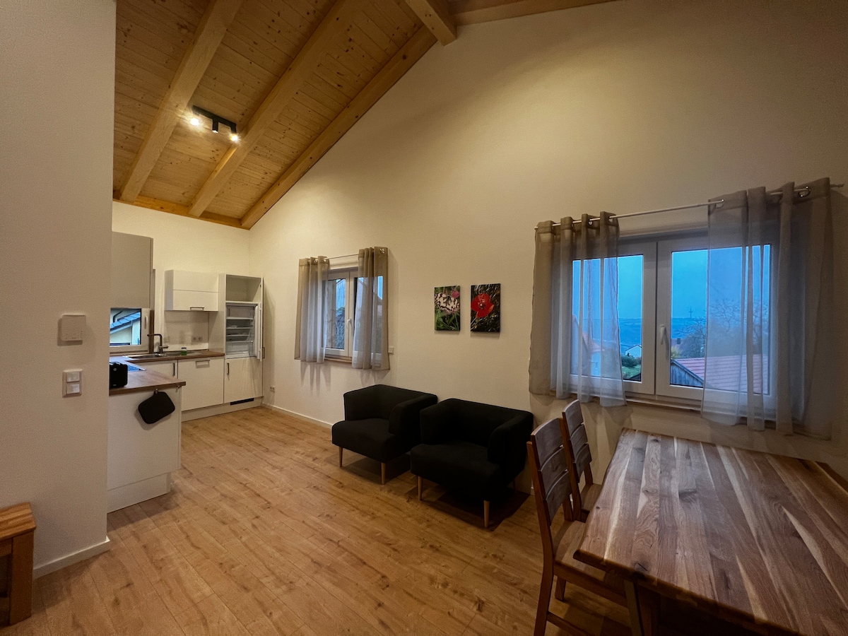 La nostra casa d'hostes de 78m ² té capacitat per a 6 persones. El centre del pis és l'espaiós saló/menjador. L'allotjament té dos dormitoris, un gran bany a la llum del dia amb banyera, dutxa, lavabo i vàter. També hi ha un lavabo per a convidats. La cuina espaiosa està equipada amb vitroceràmica d'inducció, forn, microones, torradora, bullidor, cafetera de filtre i nevera amb compartiments de congelador separats.