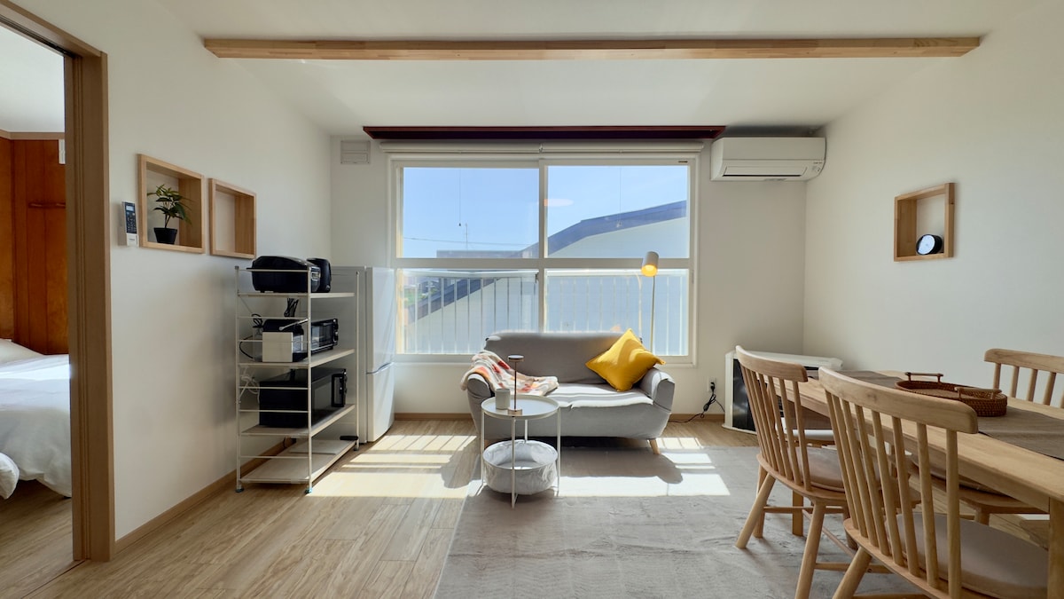 【Ara ofereix uns descomptes fantàstics per a reserves d'última hora!】 El cel blau cristal·lí s'estira infinitament, Camps verds que s'estenen fins a l'horitzó, Hi ha grans camps de neu fins on arriba la vista. Aquest és Tokachi, Obihiro, on pots gaudir del paisatge per excel·lència de Hokkaido. Situada a prop del centre de la ciutat, aquesta zona combina comoditat i abundant natura, i ofereix una habitació apta per a animals de companyia.