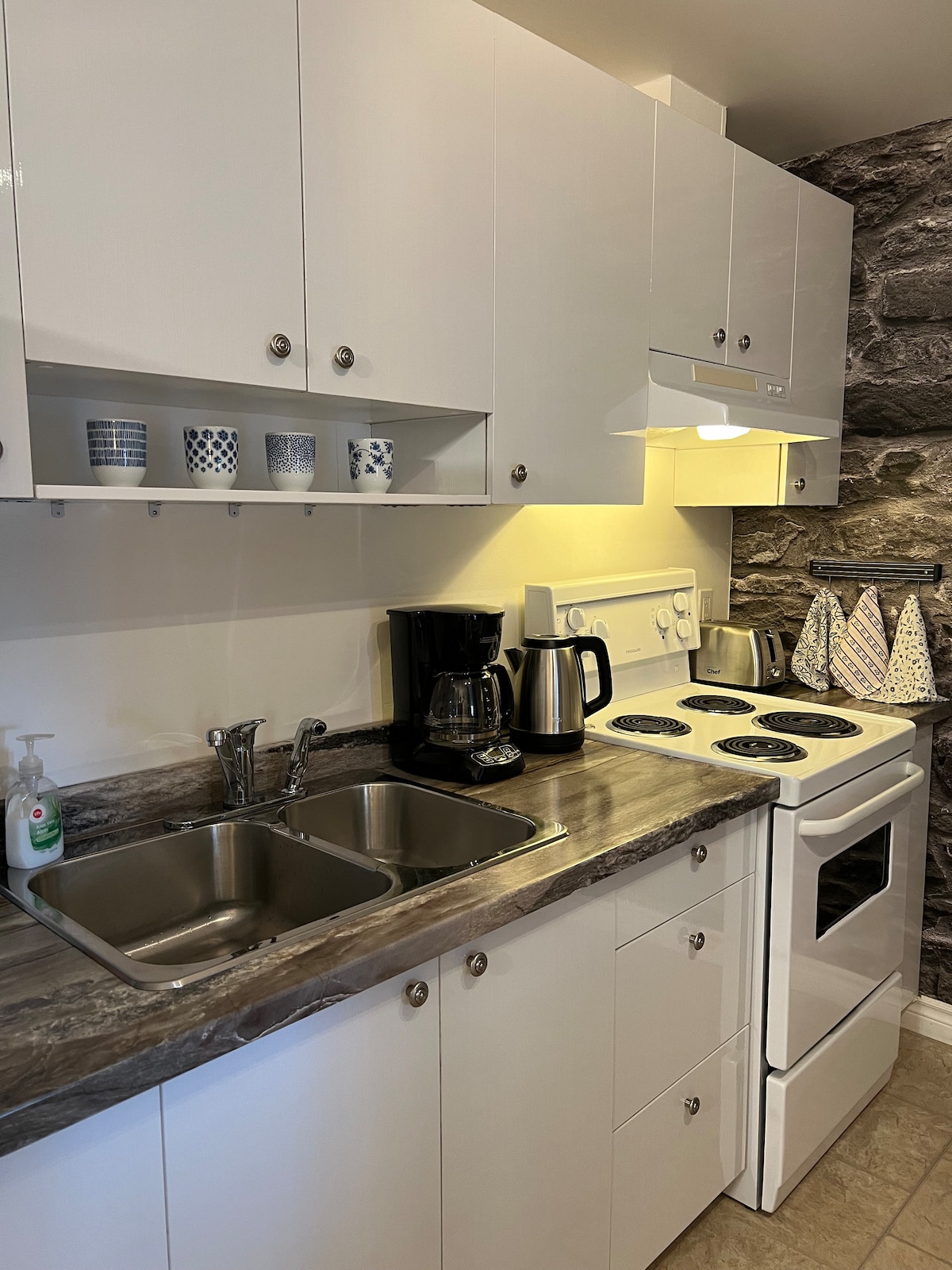 Allotjament perfecte per a parelles, viatgers solitaris, de negocis i companys de quatre potes! Impressionants vistes panoràmiques del riu Sant Llorenç i de l'illa d'Orleans. Tot amb aire condicionat i accés wifi i televisor intel·ligent de 50". Terrassa privada amb vistes al riu. Capacitat per a 2 persones (+ un sofà llit doble i possibilitat de llogar en 2 allotjaments relacionats amb una capacitat de 4 a 6 persones).