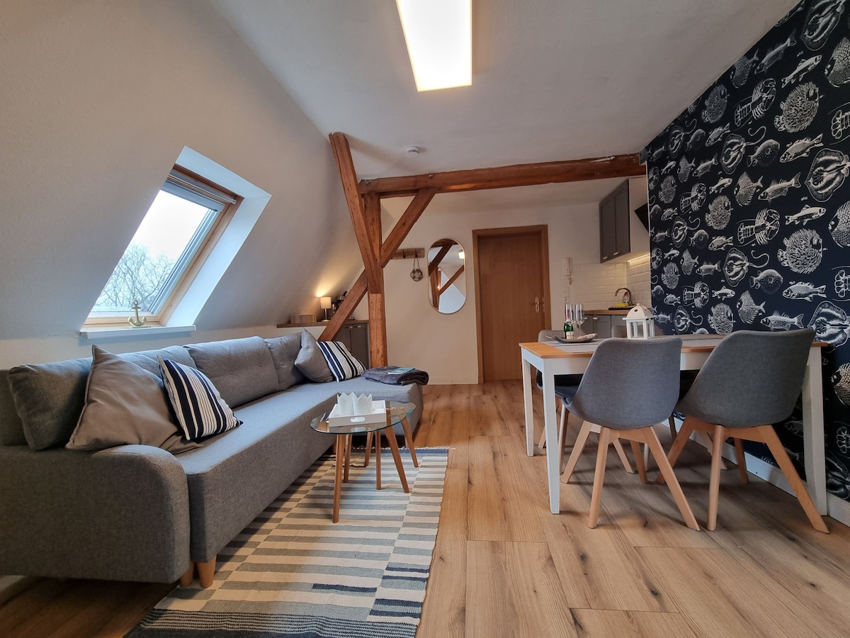 El nostre apartament es troba a l'antiga sala d'estar d'un antic i molt reformat Gulfhof, al peu del dique, enmig d'una reserva natural. Els sostres alts, les bigues gruixudes, les grans finestres de fusta amb una vista fantàstica del paisatge de Frisia Oriental i una decoració moderna amb molta atenció als detalls fan d'aquest pis un lloc per baixar i relaxar-se.