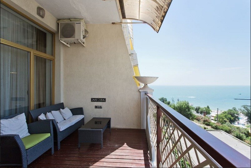 A very stylish designer apartment with an amazing city and sea view that can be enjoyed from the open terrace. Equipped with modern technology and good quality furniture. 20 minutes walk from the beach. For those with good taste and appreciation for nice things. Стильна квартира з дизайнерським ремонтом з чудовим видом на місто та море. Оснащена сучасною технікою та якісними меблями. 20 хвилин пішки до пляжу. Для тих, хто має гарний смак та цінує красиві речі.