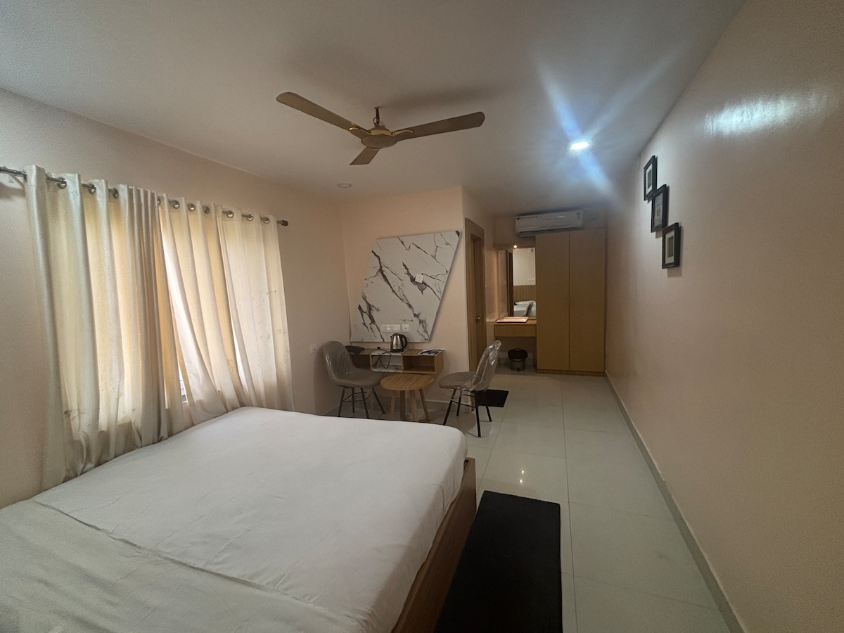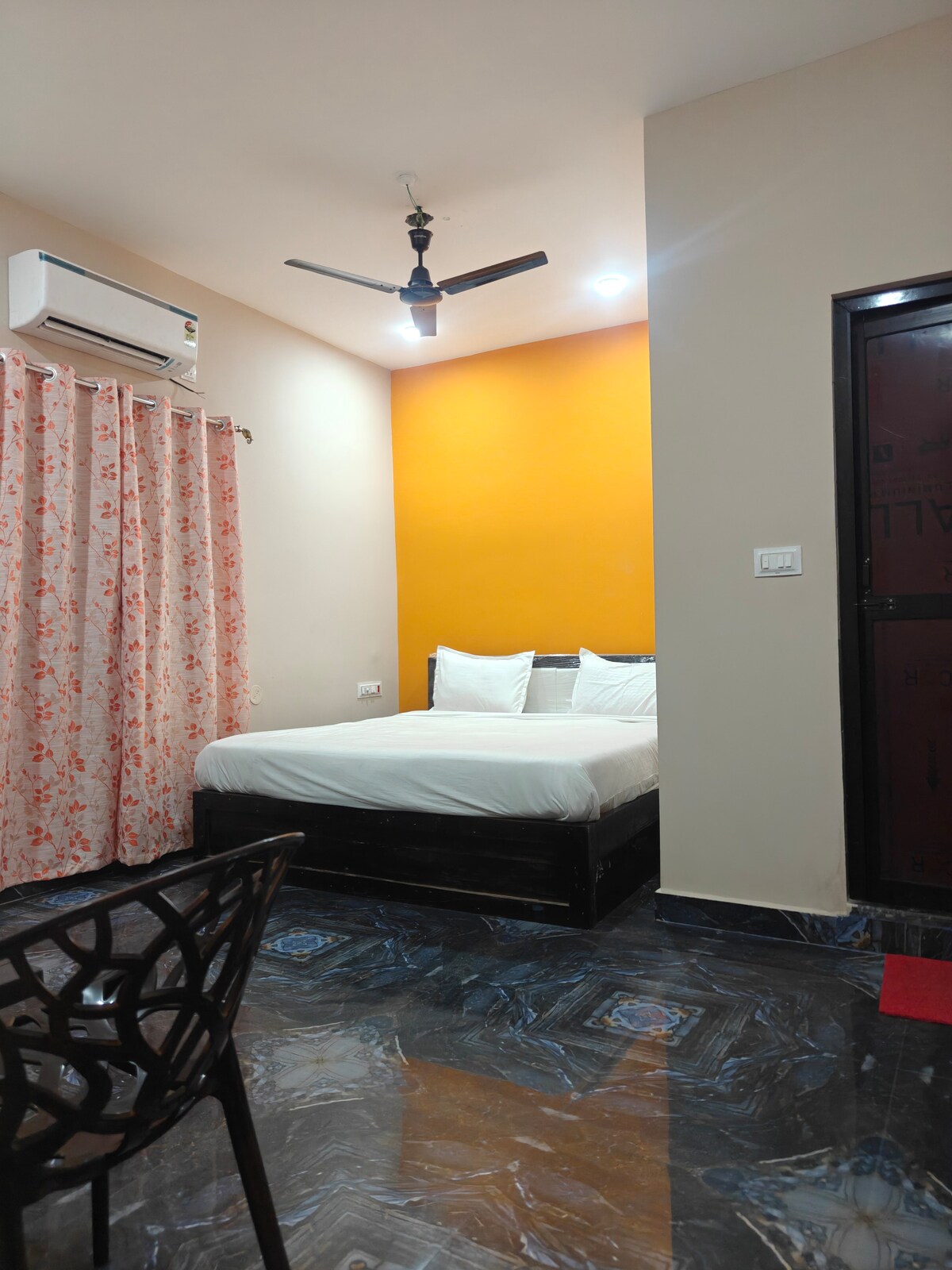 1 tipus BHK apte per a famílies amb – Sala (sala d'estar i cuina petita amb sofà llit) més un dormitori amb un llit de matrimoni i un bany annex. Apte per a 4 adults. Privacitat, seguretat i tranquil·litat al cor de Jagannath Puri, a només 300 m a peu del temple de Jagannath. Equipat amb vàter, géiser i aire condicionat d'1,5 tones amb gas, estris de cuina i sistemes necessaris per dormir per a una estada còmoda per a 4 adults / una família.