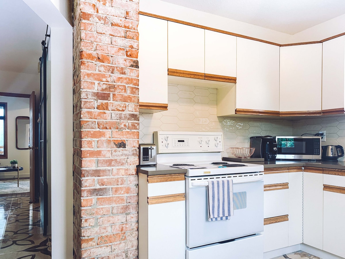 - Apartament espaiós d'1 dormitori amb sostres alts - Llit «king size» amb molts coixins - Televisor de 55"amb Apple Play - Wifi ràpida - Cuina totalment equipada - Aparcament subterrani: vistes precioses de l'horitzó de la ciutat de Calgary. - Situat a Inglewood, trobaràs cerveseries locals, cafeteries, restaurants, música en directe i compres. - El riu Bow, a pocs passos de la porta! - A poca distància a peu dels terrenys de Stampede. - Observa els focs artificials des del pati