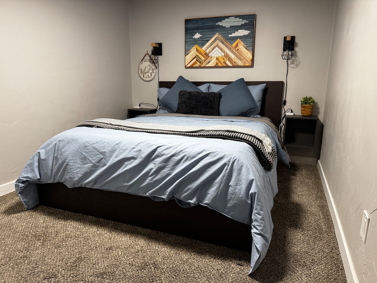 Vine a allotjar-te al nostre acollidor soterrani! Vam renovar els dormitoris el juliol del 2025! Estem just al final de la carretera del centre històric d'Ogden, a només 5 minuts de iFly Utah, a 5 minuts de la Universitat Estatal de Weber, a 15 minuts de la Base de la Força Aèria de Hill i de les instal·lacions de Northrop. A prop de moltes rutes de senderisme i ciclisme, així com de llacs i embassaments. Si t'agrada esquiar tant com a nosaltres, pots arribar a 12 estacions d'esquí en menys d'una hora i mitja. La més propera és a només 30 minuts. Tindràs una entrada privada a la planta baixa