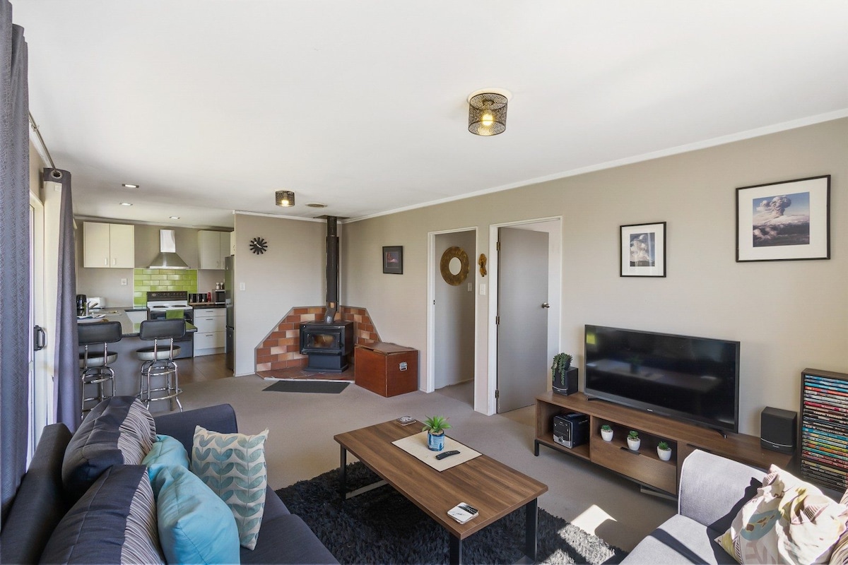 Un xalet acabat de reformar, amb totes les comoditats. Hi ha molt d'espai per a dues parelles o famílies amb dos dormitoris a la planta superior, a més d'una sala d'estar oberta, bany i bugaderia a la planta baixa. Aquesta és la teva llar lluny de casa, en una zona tranquil·la però a poca distància de l'estació de tren del parc nacional, la cafeteria Station, Macrocarpa Cafe, Schnapps Bar i Park n Ride per al transport a la pista d'esquí de Whakapapa a l'hivern. T'esperen senders per a bicicletes de muntanya i estem a les portes del famós Parc Nacional de Tongariro de la UNESCO.