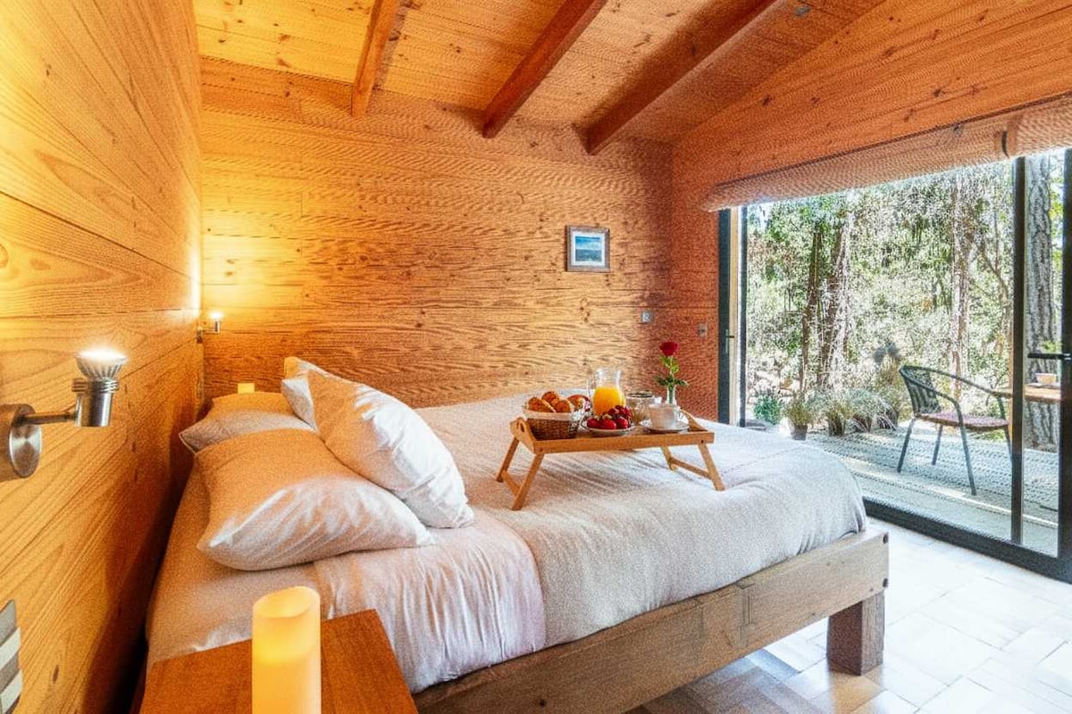 Contamos con dos cabañas boutique premium matrimoniales para dos personas completamente equipadas , sin cocina , aire acondicionado, caja de seguridad , frigobar , secador de pelo , televisión satelita 42'l HD , wifi , asesoria turísticas cerca de restoranes y viñas de la zona . Además de una gran piscina y un excelente vino de bienvenida. INCLUYE DESAYUNO , sin servicio de mucama