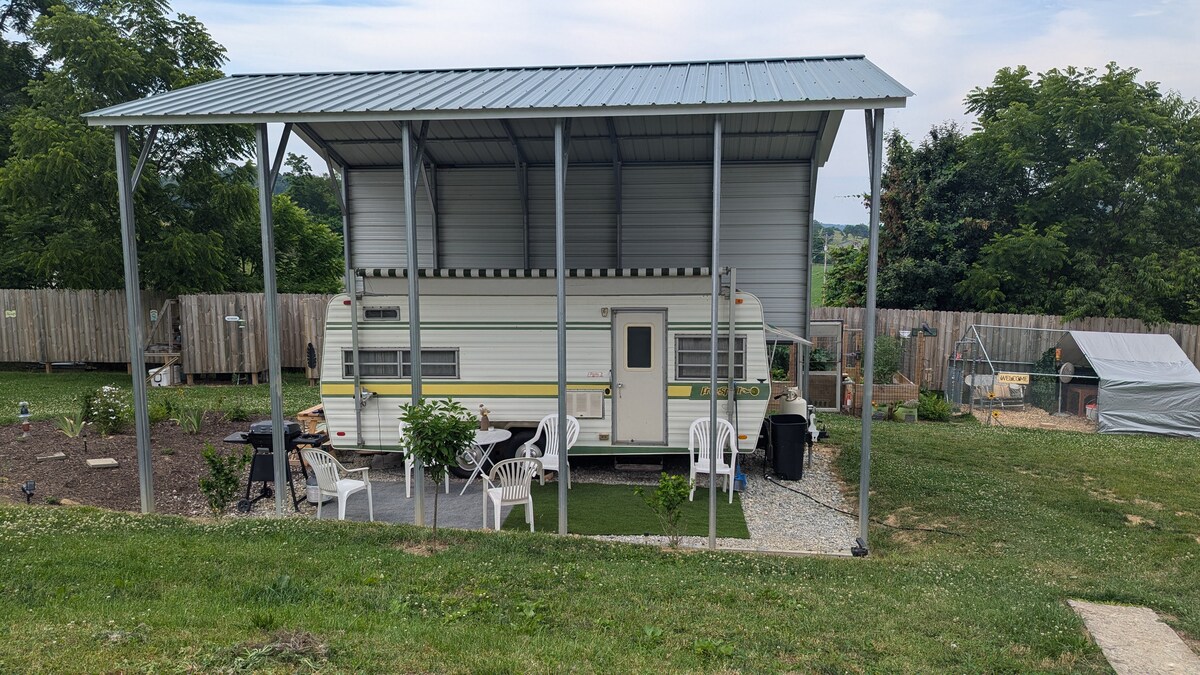 Relaxa't al nostre tranquil refugi a prop de Salt Fork State Park i Marina, a poca distància en cotxe de la I-70 i la I-77. Tot el necessari per gaudir de la natura és a prop, incloent-hi l'accés al riu Tuscawaras per fer caiac o piragüisme. Situada en un bosc privat de 5 hectàrees, la nostra caravana es troba en una obertura assolellada. Agafa la teva beguda preferida al matí i passeja fins al nostre mirador preferit. Un camí recorregut circular condueix a un banc assegut sobre una gran roca glacial, amb vistes a les zones freqüentades per la fauna local.