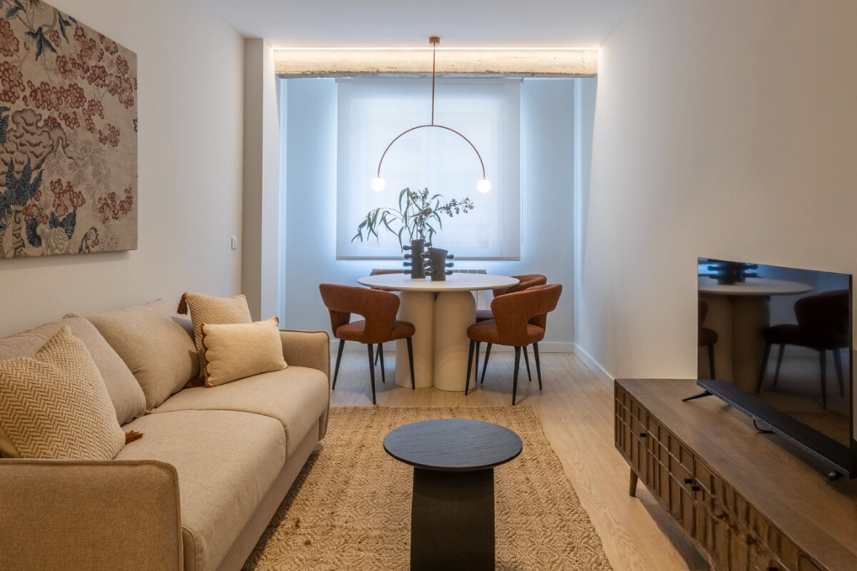Preciós pis d'estil rústic, recentment restaurat, al carrer vianant més emblemàtic de Logroño "Portales", a dos minuts a peu de la plaça del mercat i de la Catedral. Envoltat de terrasses, bars de vins, restaurants, museus i a 5 minuts a peu del famós pont de ferro i del parc Ebro. El pis es troba a la quarta planta sense ascensor, però val la pena l'esforç de les escales. No és recomanable per a famílies amb nadons o nens petits que hagin de portar cotxets.