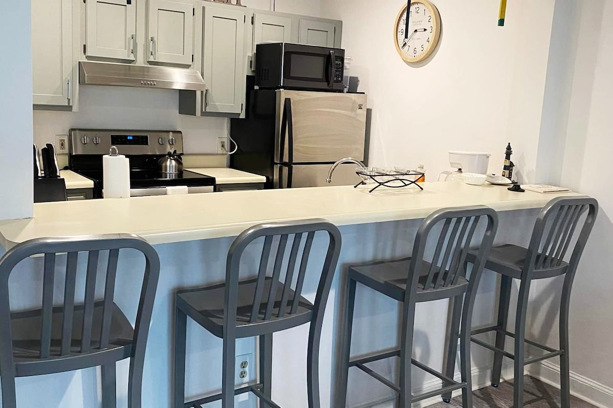 Aquesta unitat de 3 dormitoris de la planta baixa té capacitat per a 7-8 persones i ofereix accés privat a l'allotjament. Hi haurà 1 llit «king size», 1 llit «queen size», 1 llit «full size» i un sofà llit, un bany complet i una cuina completa (menjar a la cuina). L'allotjament està a uns 4 minuts a peu de la platja, a uns 6 minuts a peu de l'estació de tren i a 8-10 minuts del palau Playland. A un minut d'una parada d'autobús i a una illa d'una botiga pràctica.