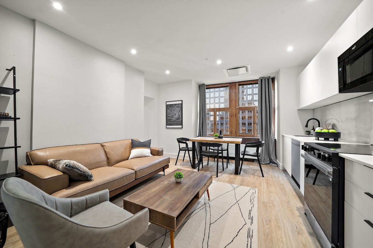 Welcome to our stunning modern 2-bedroom suite in the heart of downtown Montreal, just steps from the Old Port! This stylish suite boasts a sophisticated open-concept design, high-end finishes, and a fully equipped kitchen perfect for home-cooked meals. Relax in the luxurious bedrooms with plush bedding and unwind in the elegant living space. With top restaurants, boutiques, and nightlife at your doorstep, experience the perfect blend of comfort and city excitement!