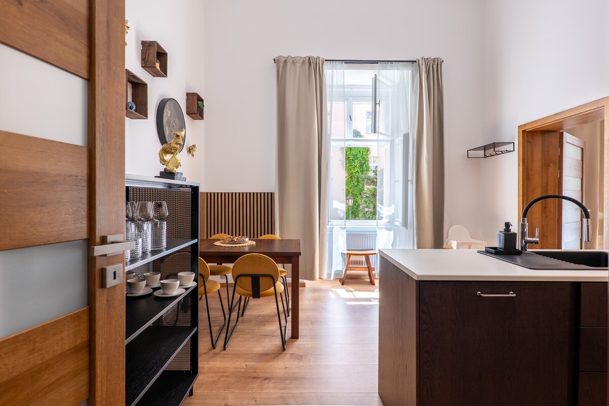Welcome to NAPZ HOMES our charming apartment, just 20 seconds away from the majestic Charles Bridge! The tastefully designed studio apartment, measuring approximately 30m2, can accommodate up to three guests. Situated on the third floor of an 18th-century historic building, our home provides you with a unique glimpse into the splendor of bygone eras, combined with modern comfort.
