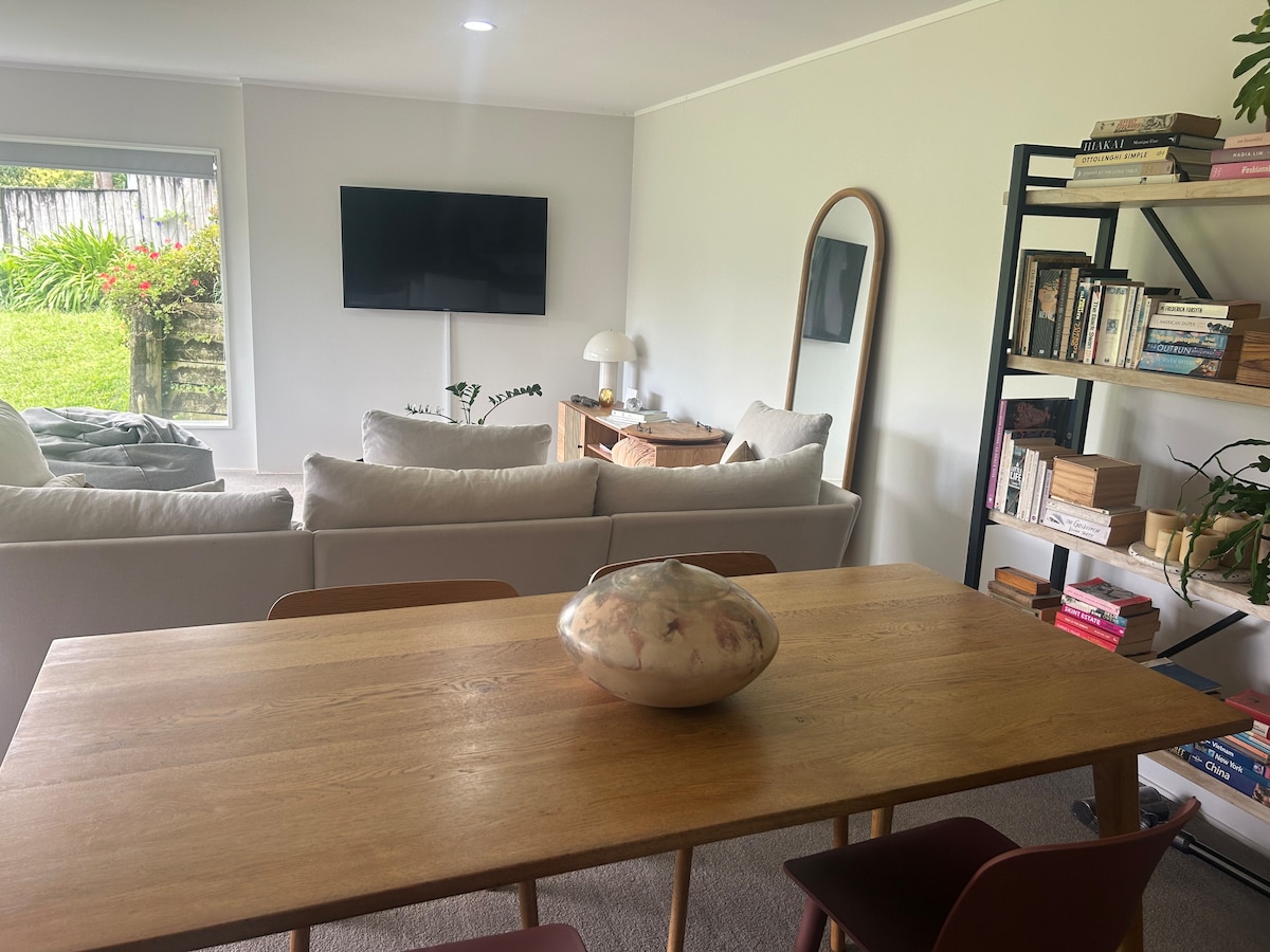 Aquest preciós apartament d'una habitació es troba en una ubicació fantàstica, a pocs minuts de les platges d'Oneroa, de les parades d'autobús i a només 10 minuts a peu de les botigues, restaurants i cafeteries d'Oneroa Village. Perfecte per a una parella per passar un cap de setmana relaxant. No cal cotxe, ja que pots agafar autobusos des de la terminal de ferris de Matia Wharf i fins a altres platges, vinyes i atraccions turístiques de Waiheke.