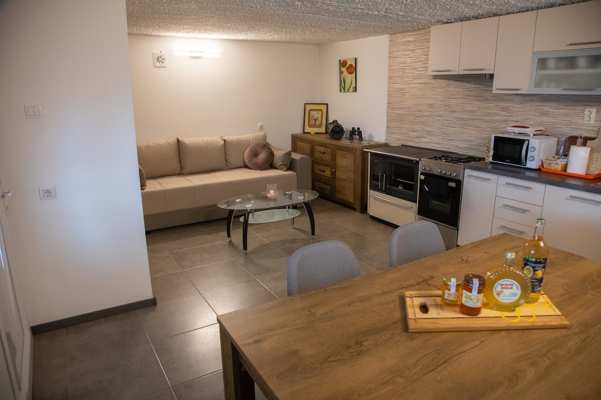 Relax with the whole family at this peaceful place to stay. A Home with a Story - with great love and dedication, the hosts have restored a nearly 100-year-old wooden house, creating a warm and cozy haven for your stay. The house is decorated in a traditional style, enriched with authentic furniture from the original home that once stood on this very spot. Wood, the dominant material in the interior, adds a unique sense of warmth, evoking the charm of a true Zagorje home.