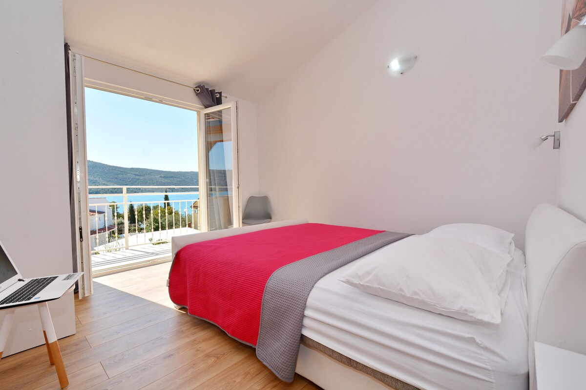 La ubicació de Villa Belvedere és el punt de partida perfecte per a Dalmàcia. Fantàstic situat al costat del mar, en una badia preciosa amb magnífiques platges de còdols, a només 5 km de la ciutat de Trogir de la Unesco i a 30 km de la ciutat de Split. La nostra vil·la, un petit paradís a la pintoresca costa dàlmata, és una exquisida residència de vacances per als amants de la pau, la natura, l'aire fresc, les platges netes i la proximitat a les atraccions turístiques, les ciutats dàlmates més boniques, les platges i els parcs nacionals.