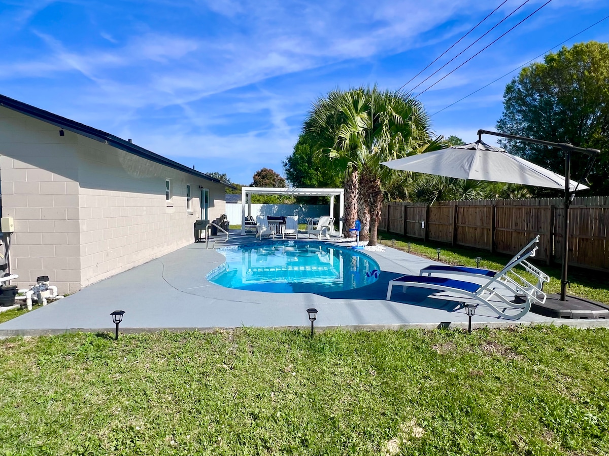 De la nostra família a la teva, et donem la benvinguda al nostre elegant oasi a Orlando. Gaudeix d'una suite per a convidats totalment equipada amb accés a una piscina climatitzada i un pati compartit, a pocs minuts de Disney, Universal Studios i el NOU Epic Universe. Relaxa't amb comoditat i estil després d'explorar les atraccions més famoses del món. Ens esforcem perquè la teva estada sigui inoblidable i esperem tornar a rebre't ben aviat. 😊