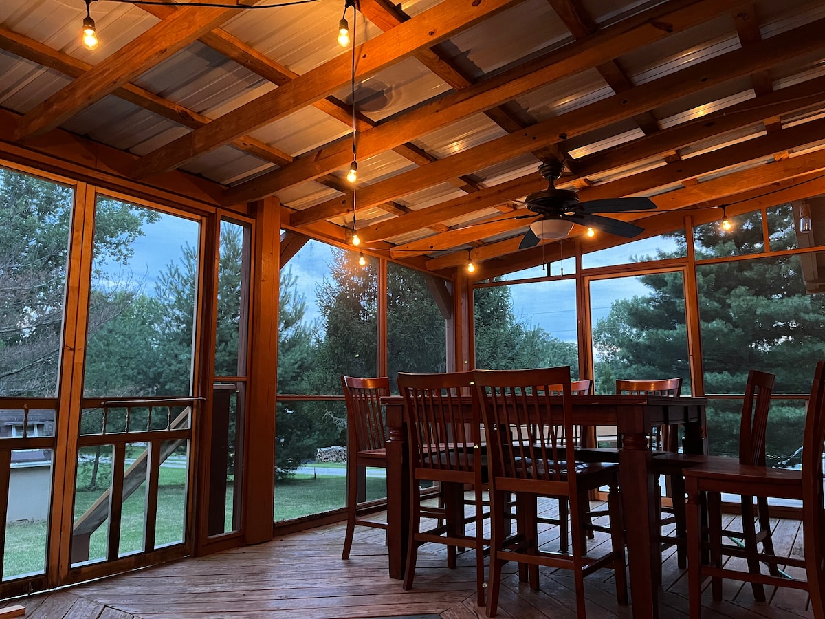 La nostra caseta no elèctrica al bosc és l'oportunitat de glamping perfecta. Aquest refugi rústic es troba a 5-8 minuts a peu de la nostra casa i de l'aparcament. La minicasa de 270 peus quadrats té un matalàs queen al loft, una estufa de llenya per a la calor, instal·lacions de cuina que inclouen una cuina de propà i aigua de pluja alimentada per gravetat (no potable). Les finestres grans donen a un preciós crit del sud d'Indiana. Dutxa i vàter de compostatge. Gaudeix d'una còmoda tenda de campanya: acampada gratuïta!