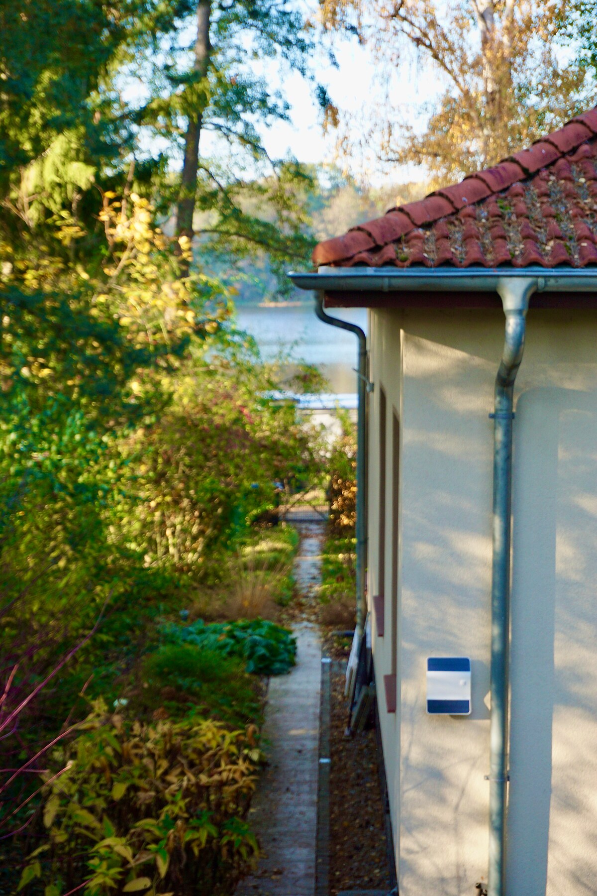 Et donem la benvinguda a aquesta caseta de carruatge única (90 metres quadrats). Construït el 1922, ha estat restaurat i reconvertit amb materials d'alta qualitat. Aquest espai romàntic es troba a les instal·lacions de la vil·la Potsdam amb fruites i nogueres antics, a la riba de Jungfernsee. A l'estiu, pots gaudir d'un bany al llac abans d'esmorzar, si ho desitges. A només un pas del famós pont Glienicke. Durant dècades, durant la Guerra Freda, el pont va ser el lloc on es van intercanviar espies.