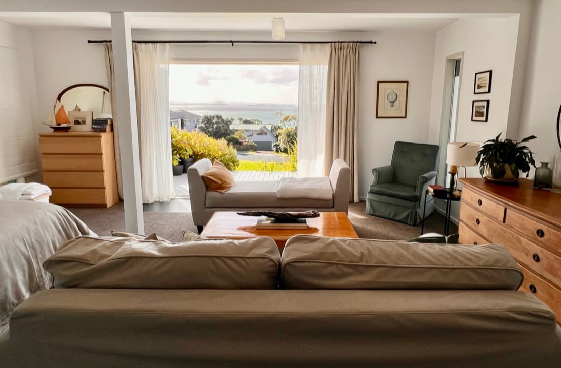 Estudi únic. Separada de l'habitatge principal amb accés propi i independent. Un espai encantador, lleuger i airejat, dissenyat originalment com un estudi d'artistes. L'espai inclou llit «queen size», dues cadires còmodes, nevera petita amb banc de te i cafè i dutxa i vàter. Accés a les instal·lacions de bugaderia a la casa principal si és necessari. A 1 minut a peu de la platja, a 1 minut en cotxe o a 10 minuts a peu d'una gran selecció de restaurants a Orewa. A cinc minuts de l'autopista, a 30 minuts del pont del port.