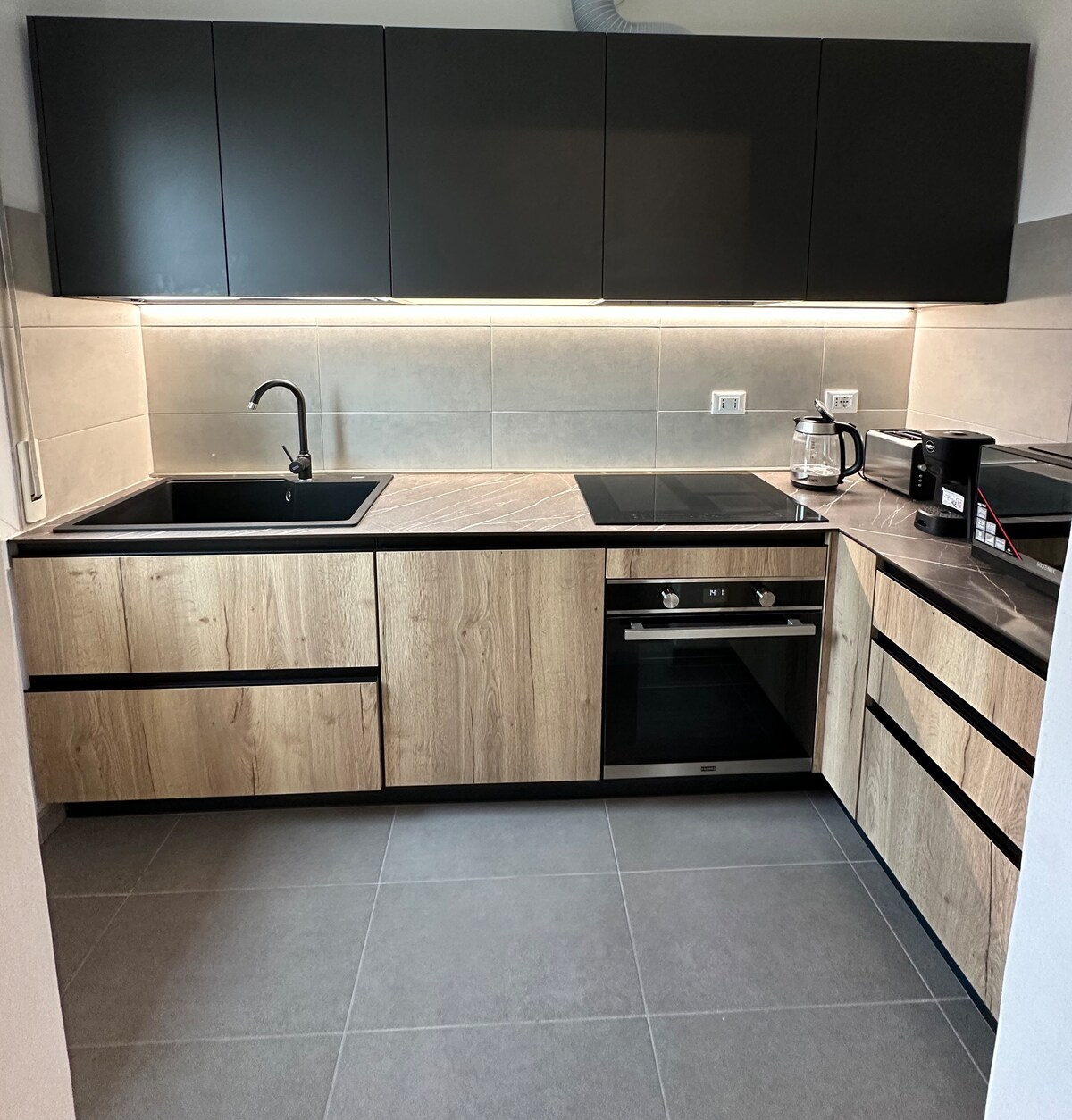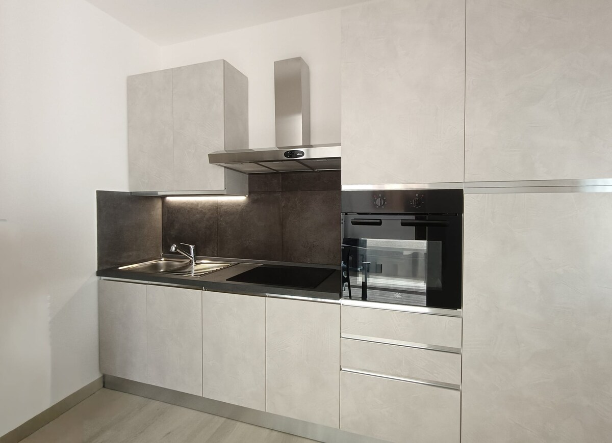 Spacious and modern studio apartment, located just a stone's throw away from public transport, with a 160x200 cm double bed, wardrobe, and a fully equipped kitchen with an induction hob, microwave, dishwasher, crockery, and basic supplies. The bathroom has a window and shower. Linens are provided. Free Wi-Fi, air conditioning, independent heating, and a comfortable outdoor space where you can have lunch or dinner and relax. Private and fenced parking for your peace of mind.