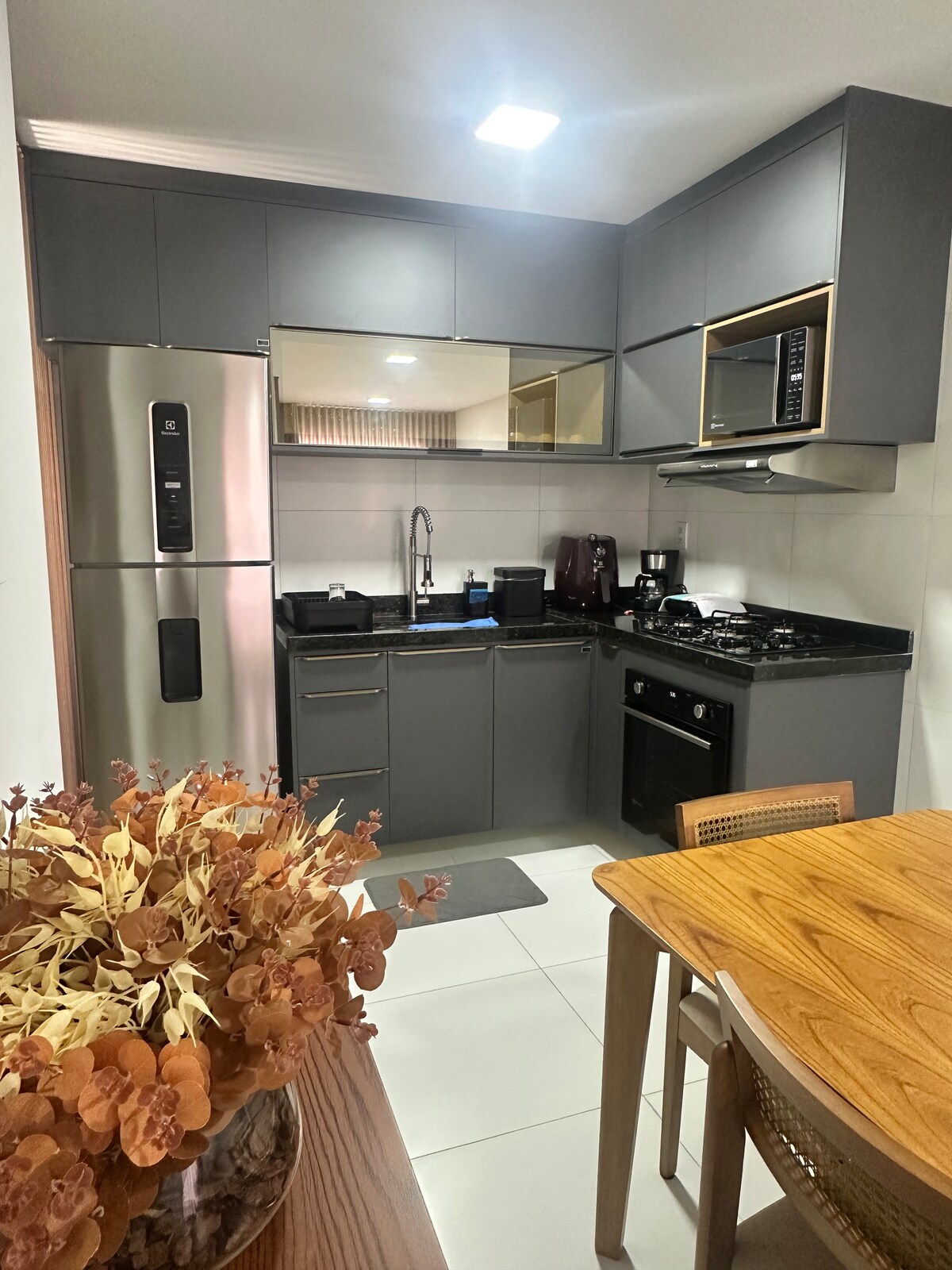 Recentment construït al centre de la ciutat, el nostre pis té una ubicació estratègica i d'accés fàcil (5-10 minuts a peu) a diversos punts de la regió, com ara compres, restaurant, gimnàs, universitat, església, clínica, hospital, fleca i gasolinera. L'apartament està complet i té 3 entorns: sala d'estar/cuina combinada amb una zona de servei, dormitori i bany. Perfecte per a aquells que busquen practicitat, comoditat i un lloc molt ben equipat.