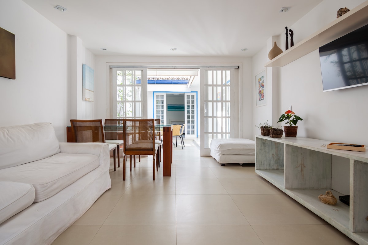 Preciosa casa en el condomini més encantador de Búzios! Amb 5 suites, aire condicionat, internet i molta comoditat. La casa disposa de piscina privada i barbacoa, cuina completa i terrassa amb vistes al mar. Condomini i assegurança tancats L'encantador condomini Village Búzios es troba a Praia dos Ossos. Camina fins a les platges: dos Ossos, Azeda, Azedinha, João Fernando i altres coses. Passeja per l'Orla Bardot fins a la Rua das Pedras sense necessitar un cotxe. L'esmorzar de vegades està inclòs al matí.