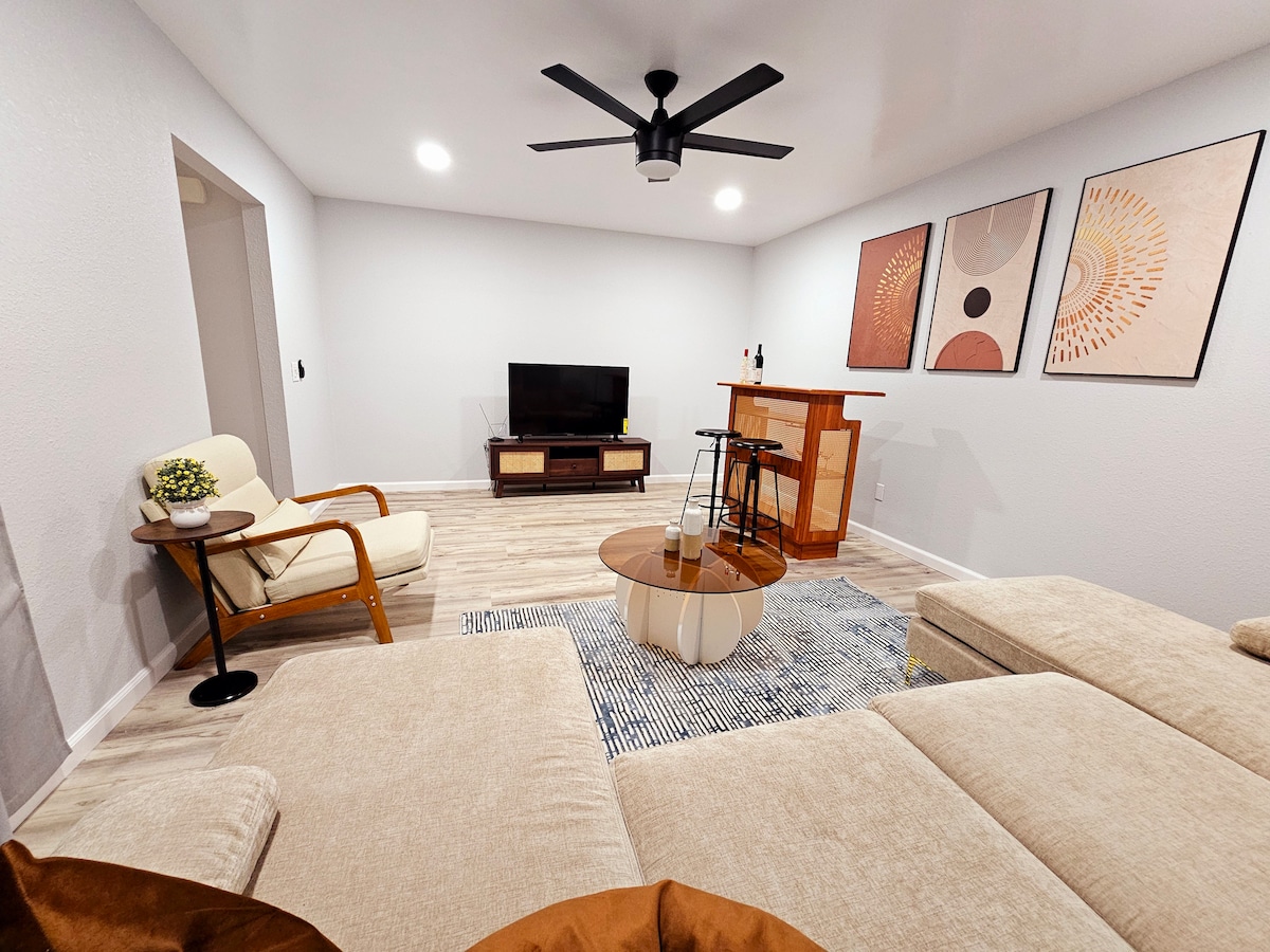 Marca. Nou. Tot. Una casa recentment remodelada en un carrer tranquil del centre de la ciutat. Banyera d'hidromassatge i dutxa exterior climatitzada al pati privat. Wifi ràpid i boig. Ventiladors de sostre als dormitoris, taulells de granit, barra d'esmorzar i electrodomèstics d'inoxidable a la cuina. Il·luminació empotrada a tot arreu. Pintura fresca, mobles nets i terres de fusta originals acabats de renovar. L'oficina té un sofà llit extra per allotjar grups més grans.