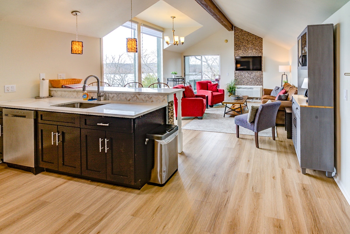 Aquest impressionant apartament a la vora del llac, situat a la 17mm al cor d'Osage Beach, ofereix comoditat i confort amb les seves millores de bon gust i unes vistes impressionants al llac. Tindràs accés estacional a 1 piscina climatitzada que obre l'1 de maig i 2 piscines amb vistes al llac que obren el 15 de maig. També pots gaudir de la pista de tennis/pickleball/bàsquet oberta tot l'any. La seva ubicació convenient a prop de cellers, restaurants, activitats i molt més, fa que sigui un refugi agradable i relaxant al llac per a tu i la teva família.