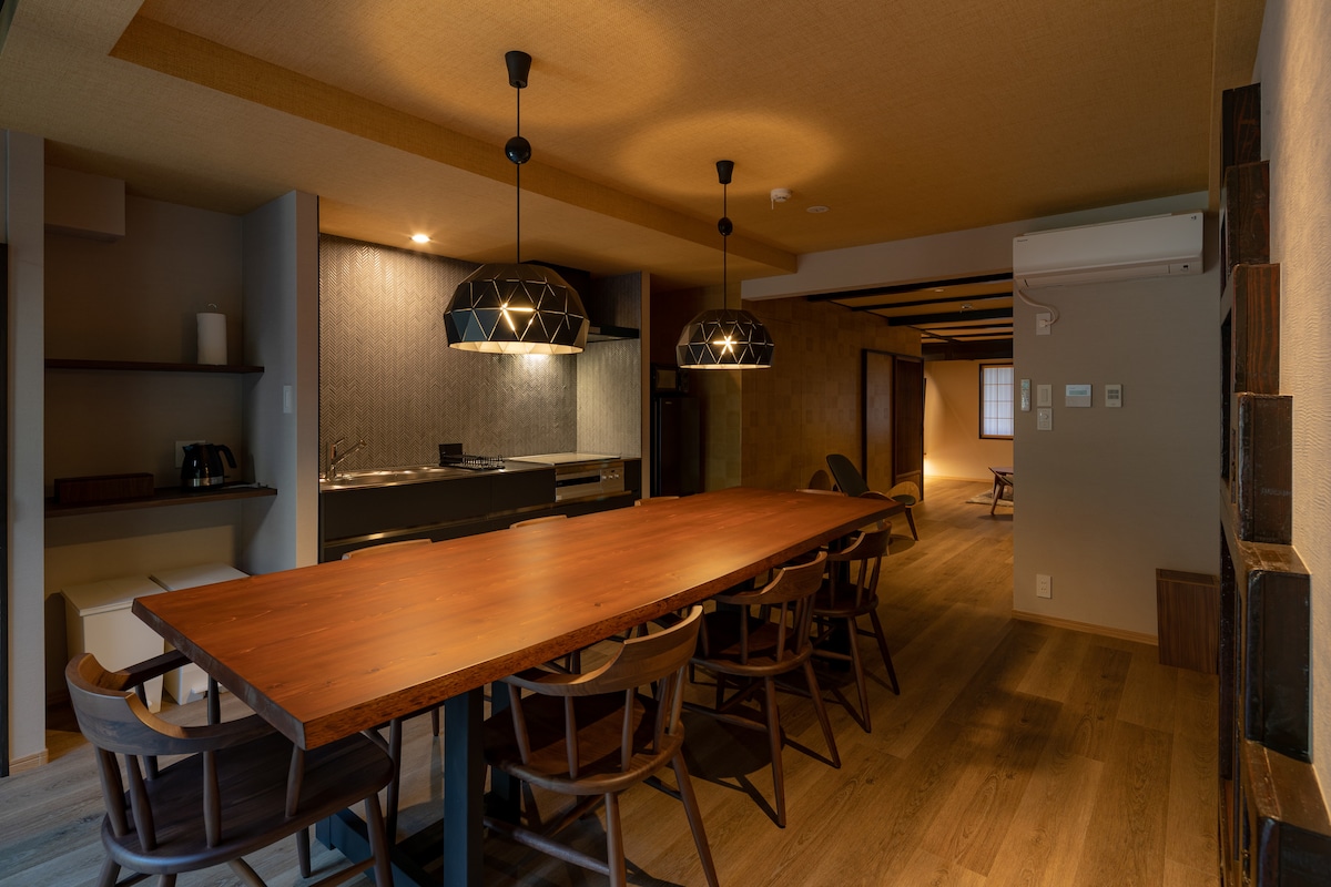 Es tracta d'una casa sencera que combina l'estil japonès amb les comoditats modernes. Va ser renovada l'agost del 2025. Aquesta espaiosa propietat, amb una superfície total de 144 m², disposa d'una zona d'estar i menjador oberta, una habitació d'estil occidental amb un llit doble i una habitació d'estil japonès amb tatami i un llit «queen size»; totes dues habitacions estan impregnades d'una aroma agradable i ofereixen un espai relaxant perquè en gaudeixis amb la família o els amics.El bany ofereix una experiència de luxe per submergir-se en aigua calenta amb vistes al jardí del pati.També hi ha una cabina de dutxa independent del bany i dos vàters.També és còmode per a una estada de dues famílies.El paper pintat està fet de paper tosa washi amb carbó binchotan, i els delicats panells shōji permeten gaudir d'un espai d'estil japonès amb una llum suau i contrastos subtils entre la llum i l'ombra.Amb la cal·ligrafia «Kawa» (riu) de l'artista Wataru Hatano penjada sobre la llar de foc, aquest allotjament de luxe és autènticament japonès.Pots relaxar-te a la sauna, fer una tertúlia a la vora de la llar de foc a l'hivern i gaudir d'un animat karaoke.També disposem d'aparcament privat, que combina comoditat i confort.A més, oferim un joc de te matxa de la casa de te Ippodo, de 300 anys d'antiguitat, a Kyoto, on podràs gaudir de la cultura japonesa.És a 6 minuts a peu de l'estació de Miyakojima i a 6 minuts de l'estació d'Osaka, per la qual cosa és una base ideal per fer visites turístiques.