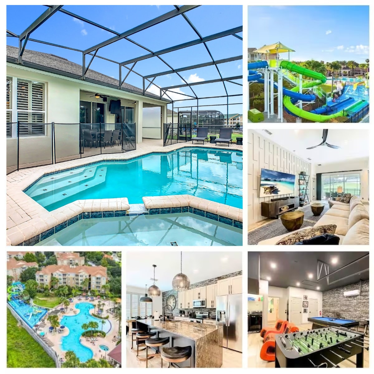 **Waterpark closed for maintenance from January 5th to February 5th, 2026** (See photo 7 in album for details) Located just minutes from Disney World & steps from restaurants. Your reservation will give you access to the resort’s amenities for up to 6 people without an additional charge! ✪AMENITIES✪ FantasyWorld amenities include: -Lazy river -Water slides -Heated pools -Pool bar -Splash pad -Jacuzzi -Gym -Picnic & BBQ areas -Playground -Arcade -Batting cage -Sports courts -Mini golf & more