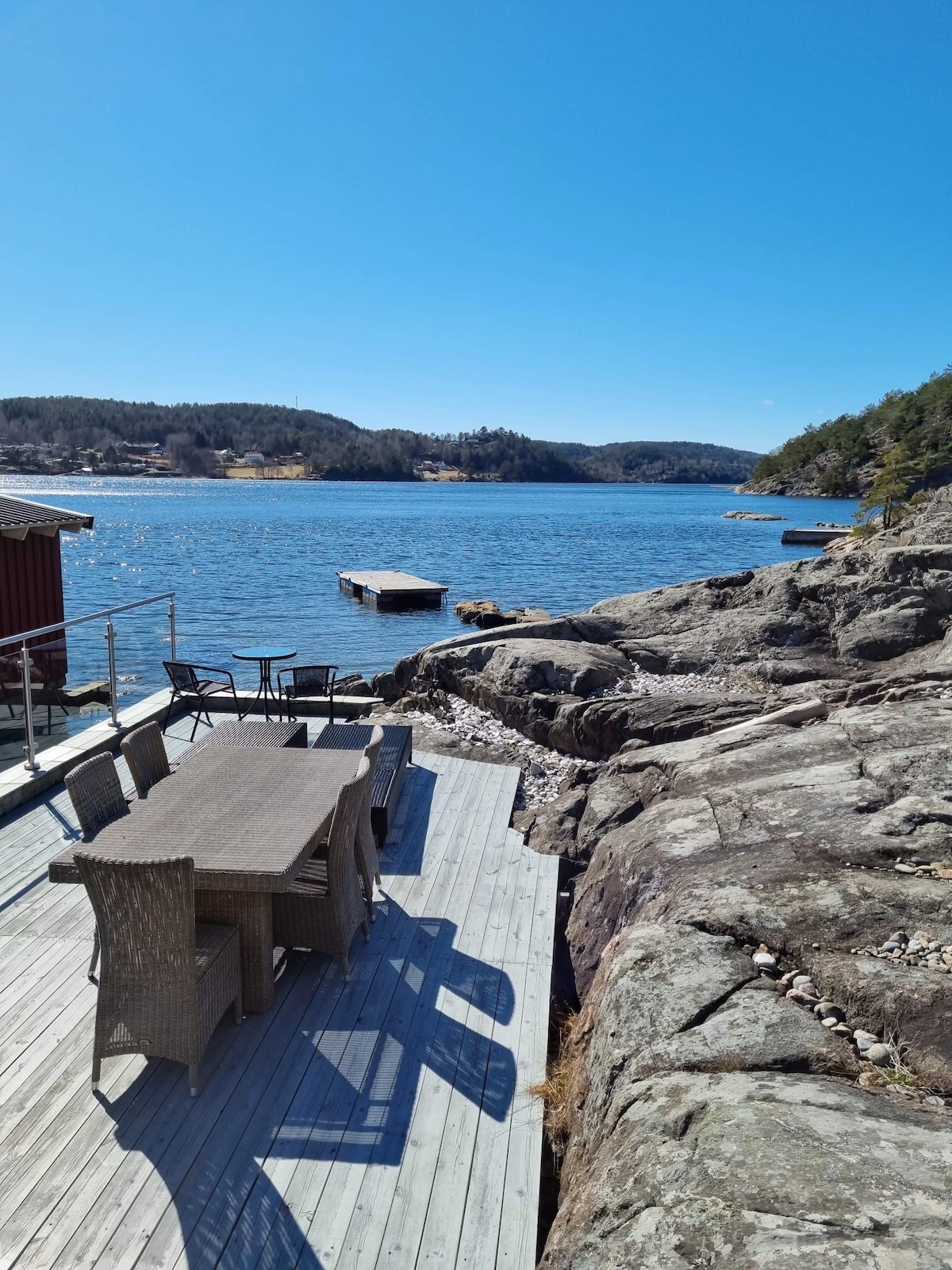 Carretera fins al final (uns 100 metres per caminar). Illa privada a Ytre Hallangspollen, Drøbak. Hi ha 4 dormitoris i capacitat per a 6 persones en total. Veure fotos. Un dels dormitoris té un llit curt, el més adequat per a nens. Platja privada, diverses oportunitats per nedar. Torre de salt / busseig. Més molls. Possibilitat de portar el teu propi vaixell. Nota: Passejada empinada des de l'aparcament fins a la caseta. Un vaixell petit (12 peus amb 4 hp) s'uneix.