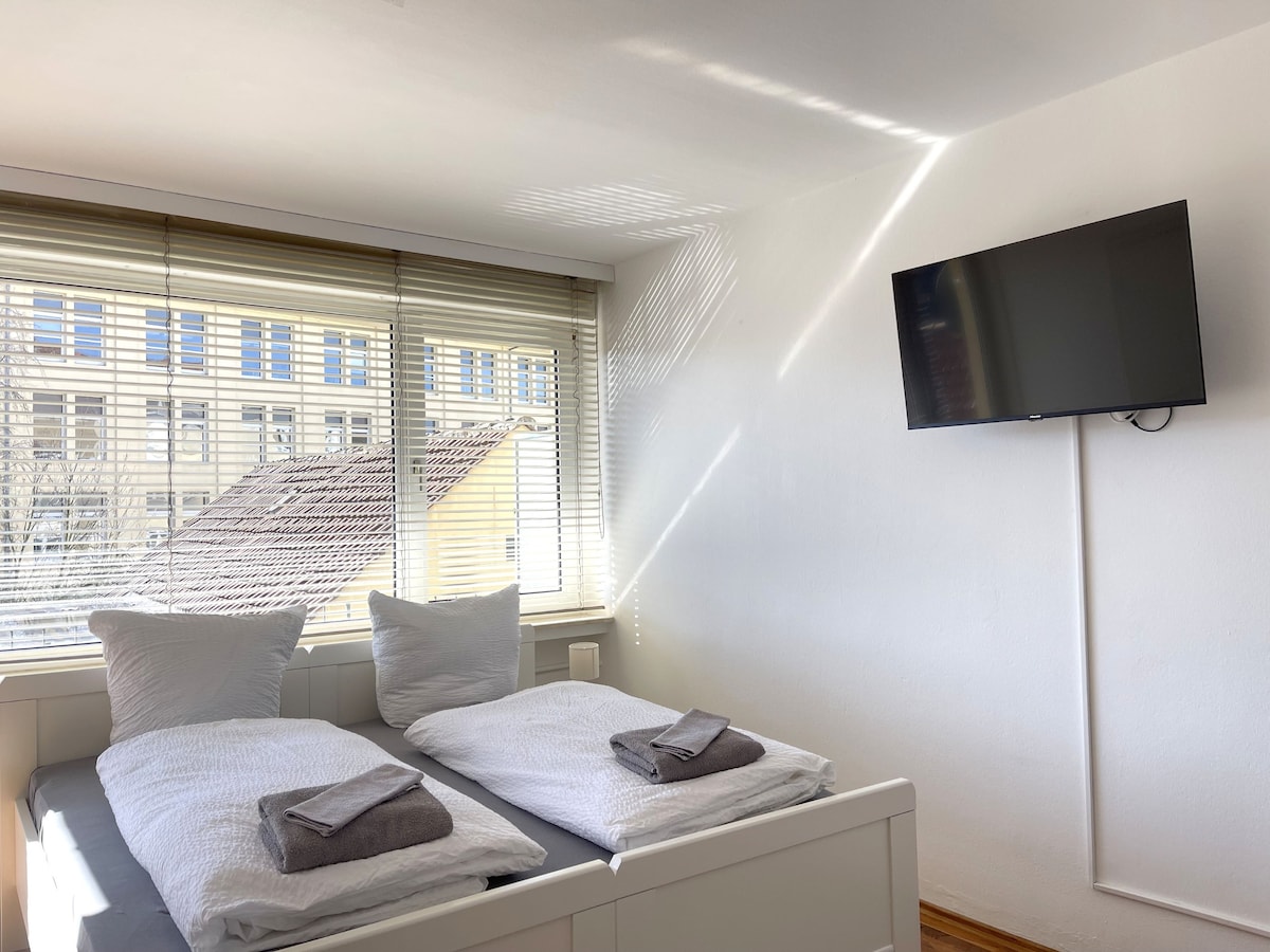 El pis està situat a l'històric Katharinenviertel, al centre d'Osnabrück. El Gründerzeithaus data del segle XIX. El casc antic, la zona comercial, l'Stadthalle, la Universitat i la gastronomia es troben a poca distància a peu. L'allotjament consta de dormitori, 2 sales d'estar, cuina totalment equipada i bany. La sala d'estar del jardí d'hivern amb zona de treball i menjador té accés directe al jardí. WLAN ràpid, pantalla de 50 polzades, connexió HDMI, televisor per SATÈL·LIT amb cadenes de televisió angleses, DVD