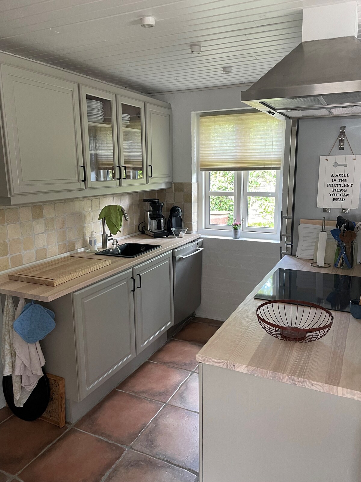 Acollidora casa d'estiu a Øster Hurup a prop de la ciutat i l'aigua A 1200 metres de compres i a 400 metres del mar Gaudeix de les teves vacances en aquesta acollidora joia, que transmet tranquil·litat, bon ambient per relaxar-te i comoditat. Aquí es poden gaudir dels bons moments, tant a fora com a dins. Nou espai reformat i agradable per a 4 persones - 3 dormitoris (1 llit doble, 1 llit de 3/4 i habitació petita amb llit individual) escalfat amb bomba de calor i estufa de llenya Hi ha un bany a la natura: llenya Bones terrasses amb sol matinal i vespertí