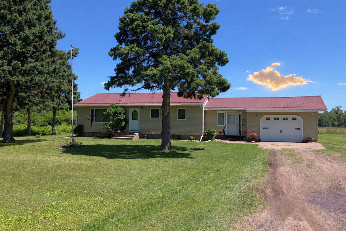 Cascades! Pesca! Senderisme! Caça! 15-30 minuts! Rutes per a motos de neu a 1,5 milles de distància! Aparcament enorme per a remolcs. Ubicació cèntrica a moltes atraccions. STARLINK. 3 bd 1,5 banys. 1 queen, 1 full, 2 llits individuals. Sofà llit. El llac Gogebic es troba a 7 milles, el llac Superior, els Porkies, 4 muntanyes d'esquí i Bond Falls. (Tots 30 minuts). Hora o menys de 25 cascades i rutes de senderisme més. Amplia biblioteca de DVD, televisors intel·ligents. ,W/D., Taula de joc, jocs de taula, llibres. Foguera, graella, vistes a la fauna salvatge, tranquil·litat total!