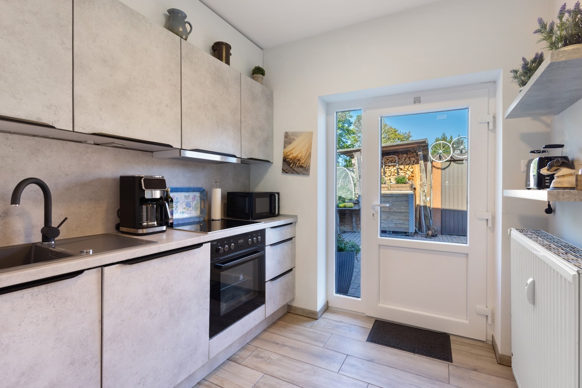 Hola! Les estades més llargues són possibles amb un descompte. Només has d'escriure'm si t'interessa. Tinc moltes ganes de donar-te la benvinguda! El meu allotjament elegant ofereix un dormitori (llit 1,40 m), sala d'estar amb sofà llit, balcó, bany amb banyera i una petita cuina amb tot el que necessites (cuina, microones, forn, cafetera). - Es permet fumar a l'exterior (per exemple, al balcó). Tingues en compte les instruccions d'aparcament. El jardí és privat i no és accessible.