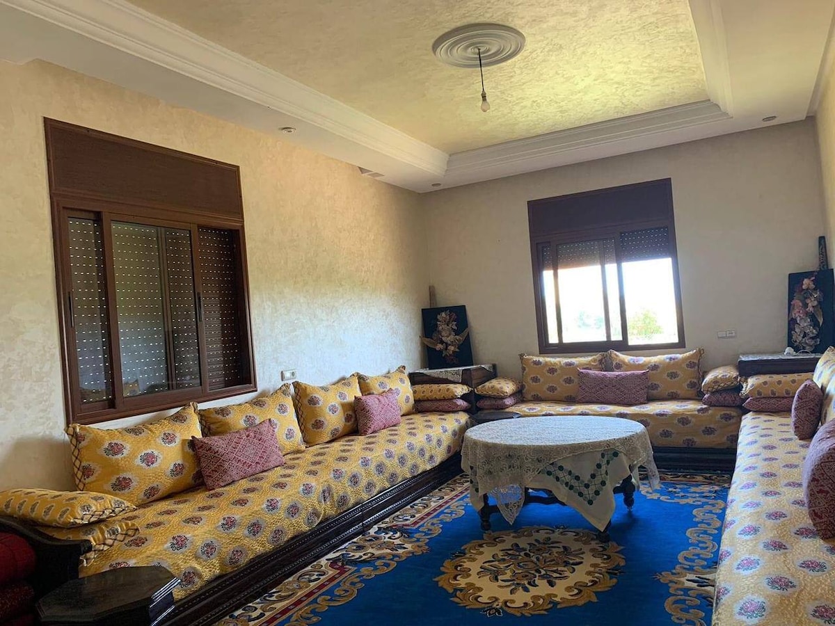 Profitez en famille à la campagne à 15 min de Had Soualem dans la région de Casablanca. Parfait pour un séjour calme, paisible et gourmand. Plusieurs activités sportives ou de détente peuvent être pratiquées dans un cadre verdoyant: basket, foot,baigande,billard,babyfoot,hammam... Tout est prévu pour se divertir en famille. Sur place nous offrons la possibilité de déguster, sur commande au préalable, des plats marocains authentiques et délicieux. Un service de navette peut être mis à disposition