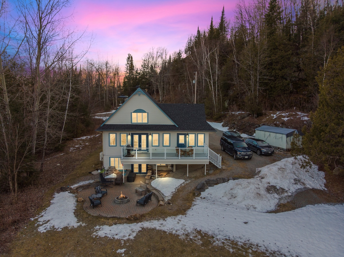 Escapada privada a Chalk River al tranquil llac Corry. No hi ha veïns a la vista. Canoa, surf de rem, bany, senderisme pel bell bosc que hi ha al costat, asseu-te al porxo cobert amb vistes al llac, rosteu dolços al voltant de la foguera o cuina els teus àpats preferits a la nostra cuina totalment equipada:) Pot treballar des de casa amb WIFI i recepció de mòbils! Totalment equipat per a tot l'any. Hi caben còmodament 8 persones (però les habitacions són petites). Ubicació semi-aïllada. A 20 minuts de la ciutat més propera. Dona una ullada a la guia en línia.