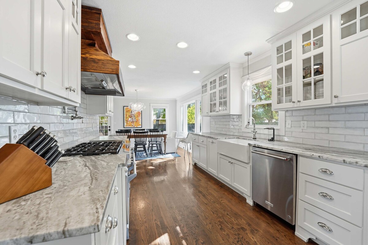 Construïda el 1910 amb un teló de fons del graner construït el mateix any, The Farmhouse és acollidora i tranquil·la. La casa s'ha actualitzat i té totes les comoditats modernes a la vegada que manté una pintoresca sensació de camp a la vora dels suburbis. Passeja pels senders naturals al centre de la pradera (1 minut), visita KC Wine Co. (6 minuts), gaudeix del temps al llac (3 minuts en cotxe) o dirigeix-te a la ciutat. El centre de Kansas City és a 30 minuts. 🔋NOUS cotxes de vehicles elèctrics ⚡️GRATUÏTS i lloguer de Tesla amb descompte disponibles a l'allotjament.
