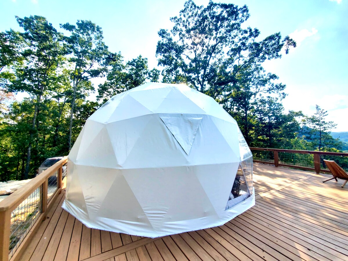Adventure meets luxury with this one-of-a-kind glamping excursion, as seen on the cover of 417 Magazine! All the best of nature, combined with the luxury of an upscale hotel room! Gaze up at the stars, or out at the rolling forestry in the comfort of your 100% climate controlled dome. Soak in the indoor jetted tub or cookout on the deck. Drink cocktails from the built-in hammock. 15min to Eureka Springs downtown. 8 min to Beaver Lake/Big Clifty swimming access!