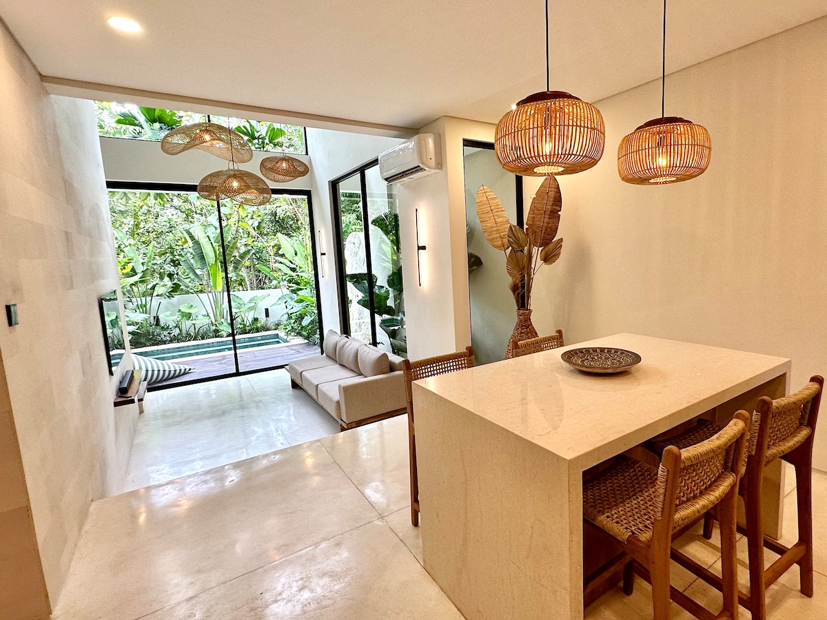 A bright and open 1-bedroom villa featuring a larger private pool and generous outdoor space, perfect for long dips, lounging, and soaking in the Uluwatu breeze. With a cozy open-concept living area, a comfy bedroom, and a peaceful tropical setting, this villa is ideal for couples and solo travelers looking for a quiet, stylish escape close to Uluwatu’s cafés and beaches. Please note we have construction works ongoing in our villa complex.