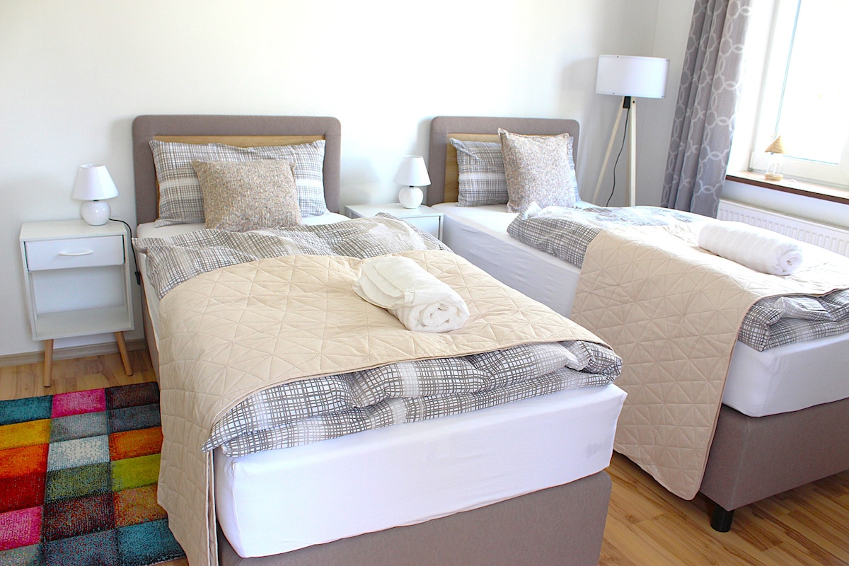 Et dono la benvinguda a un pis modern a la planta baixa –-> perfecte per a viatgers sols, parelles o famílies que busquen un allotjament tranquil i còmode. La millor ubicació: Supermercat i forn: 2 min. Parc infantil: 3 minuts. Centre: 8 min. Zona d'esbarjo local: 10 min. Els serveis inclouen: Ubicació tranquil·la Wifi ràpida (100 Mbps) Illa de cuina elegant Bany modern amb banyera Aparcament gratuït