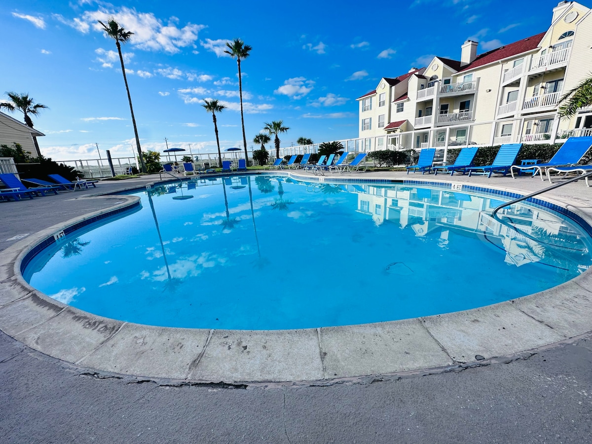 L'habitació a peu de platja inclou un llit «king size», un sofà llit «queen size», una cuina compacta i una decoració inspirada en la platja a tot arreu. Aquest estudi de 450 peus quadrats és ideal per a parelles o famílies petites. Els hostes poden gaudir d'accés a la platja a només uns passos, amb atraccions com l'Aquari Estatal de Texas i el Museu USS Lexington a 5 minuts a peu. Hi ha allotjaments aptes per a animals de companyia disponibles per als hostes que viatgin amb animals de companyia petits amb una petita tarifa.